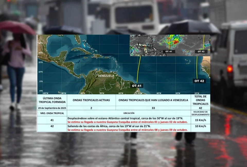 Dos Ondas Tropicales se dirigen hacia Venezuela, informa el INAMEH