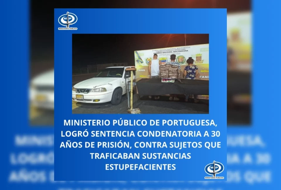 Tres personas condenadas a 30 años de prisión por tráfico de drogas en el estado Portuguesa