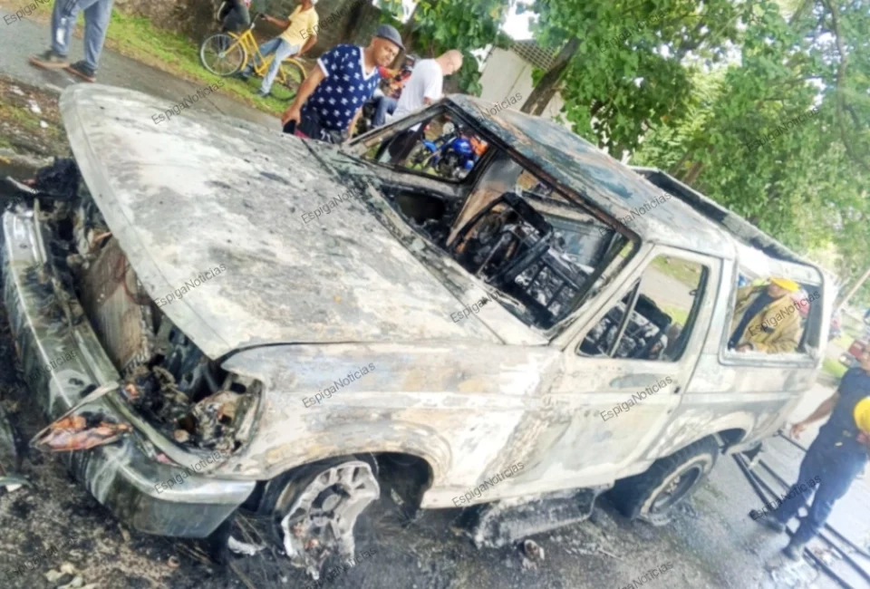 Según el reporte bomberil, el vehículo completamente calcinado es una camioneta marca Ford, modelo Bronco, de color negro, del año 1992, con placas A85BF5E.