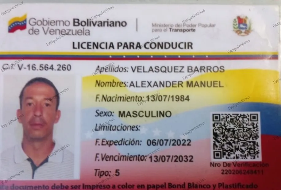 Alexander Manuel Velásquez Barros, pasajero fallecido